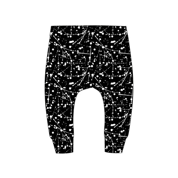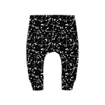 Harembroekje Zwart broekje met all over verfspetters Gemaakt van 96% biokatoen en 4% elasthan.  Twijfel je over de maat? Check dan even de maattabel