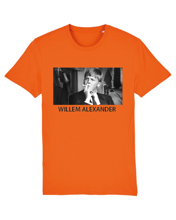 Koningsdag komt er weer bijna aan dus dat betekent oranje! Dit shirtje heeft een grappige print Willem Alexander. Je kunt kiezen of je deze print op een oranje of zwart shirt...